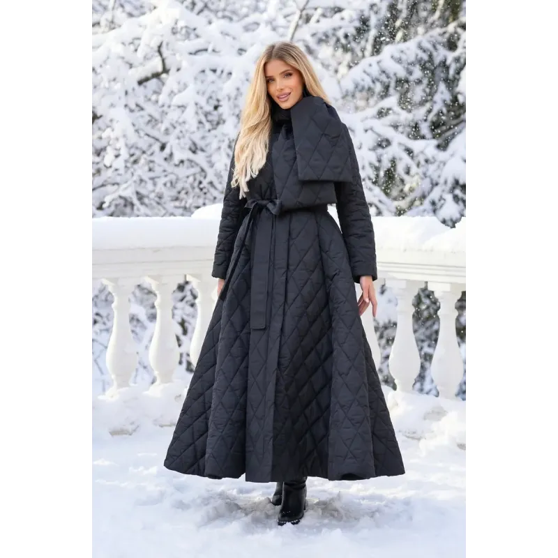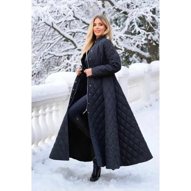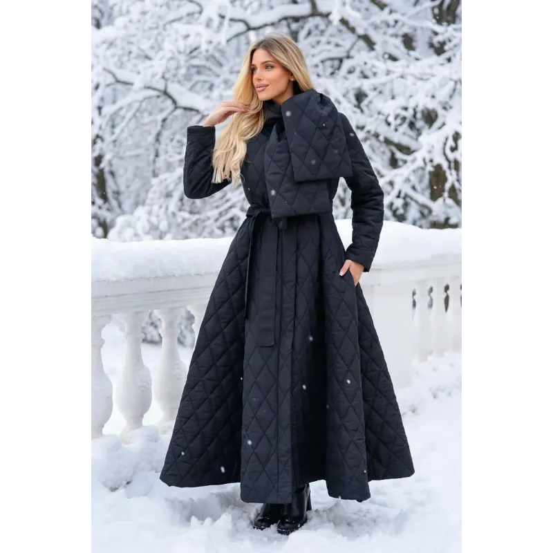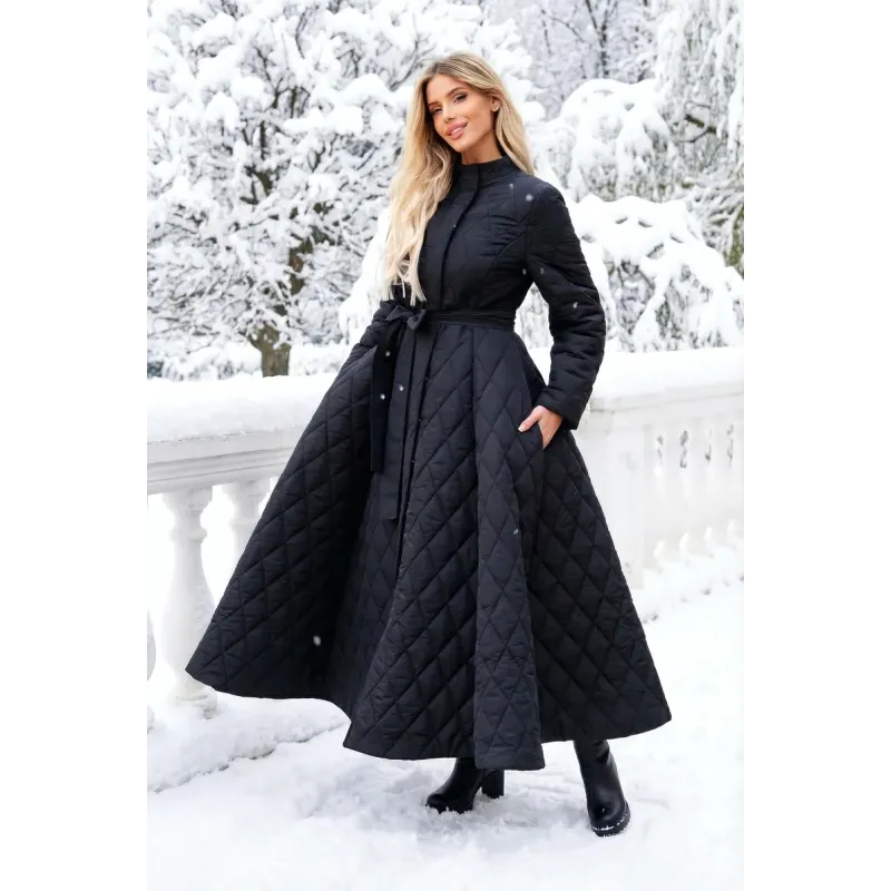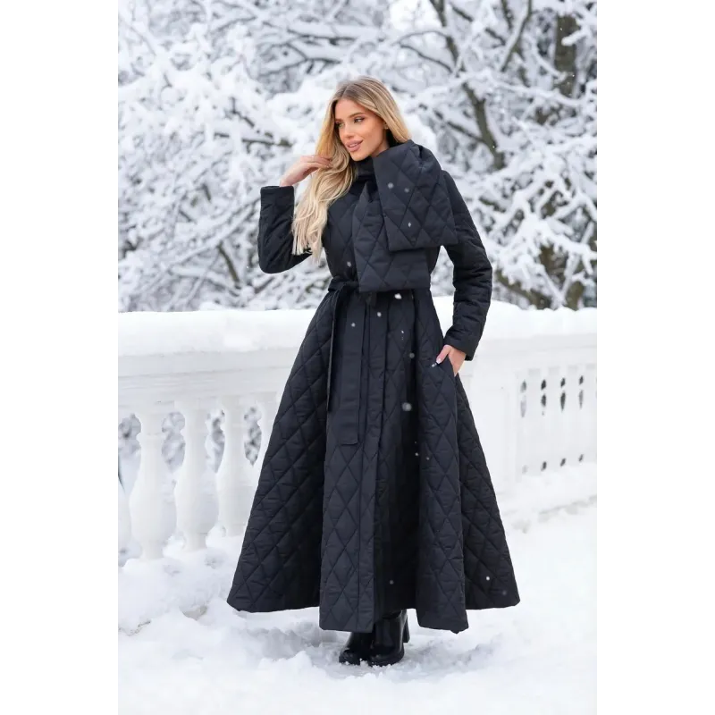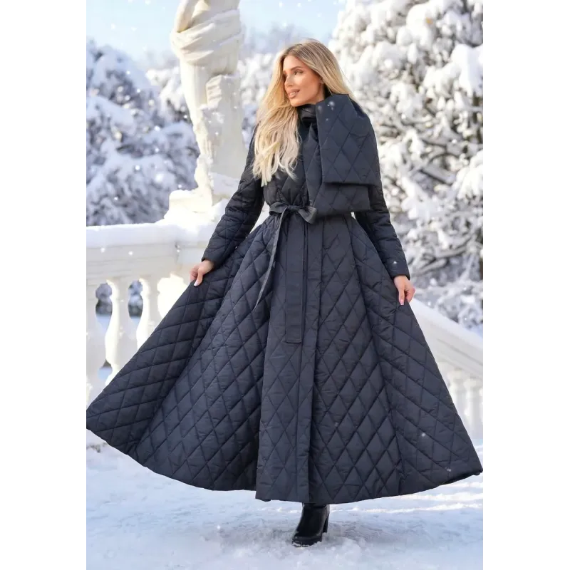 Это женское длинное стеганое пальто клёш подчёркивает вашу индивидуальность и дарит тепло в холодные дни.